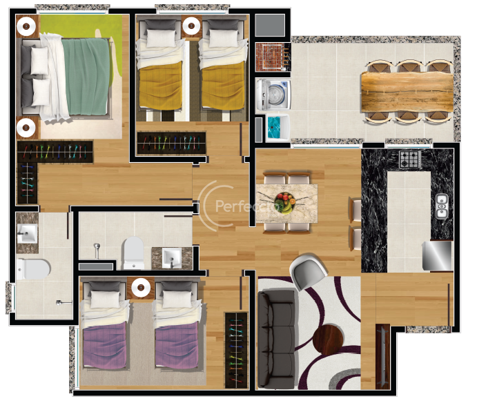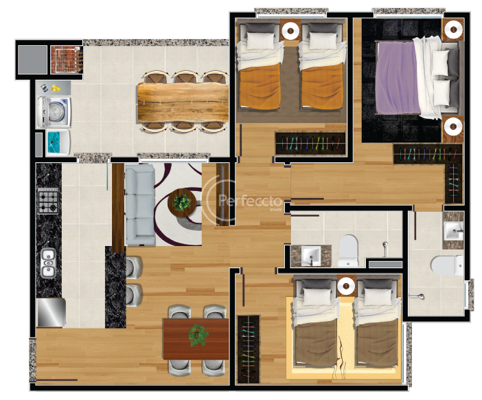 ✔3 dormitórios, sendo 1 suíte