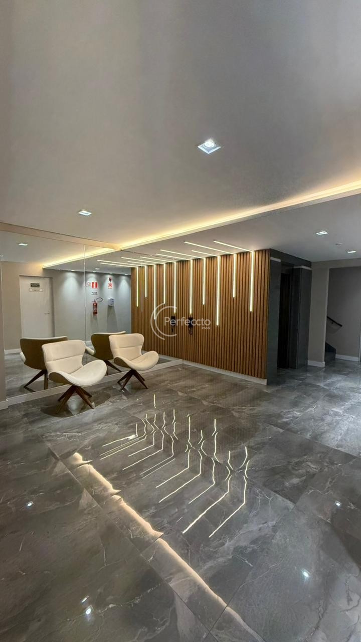 O condomínio oferece elevador, salão de festas, jardim, hall de entrada, porteiro eletrônico e sistema de vídeo monitoramento.