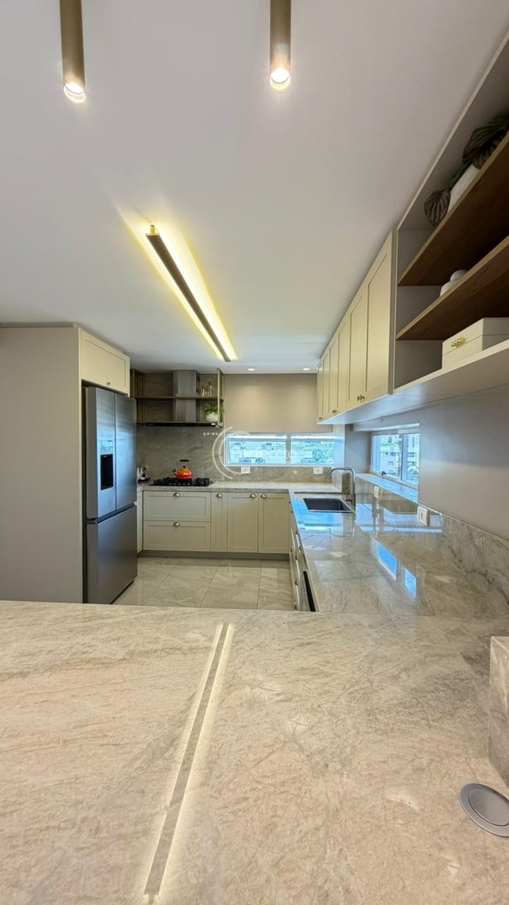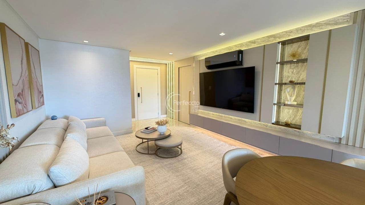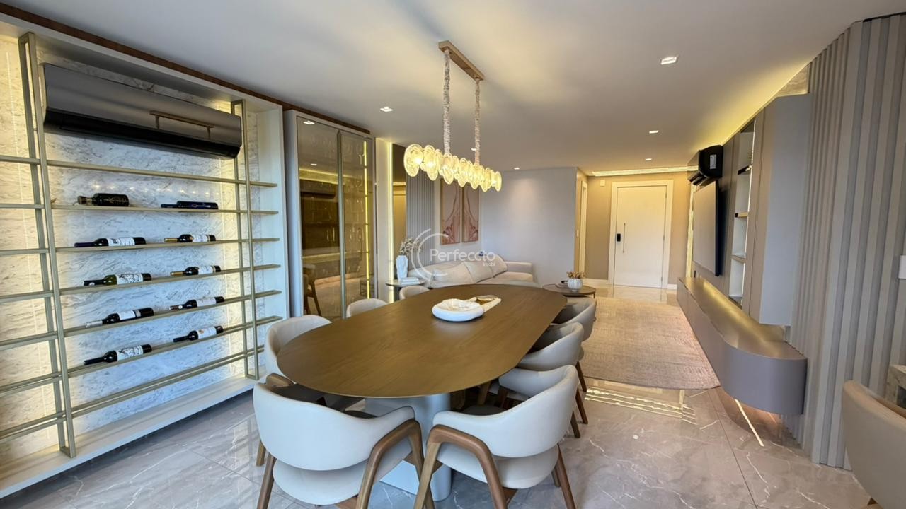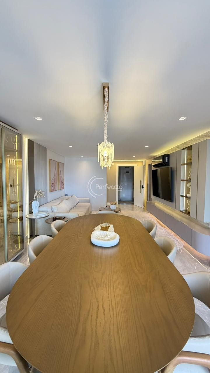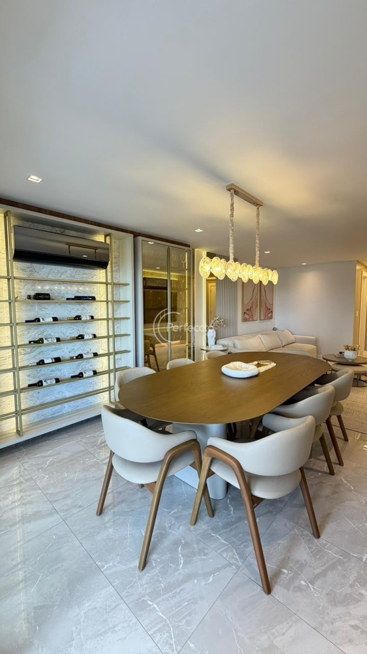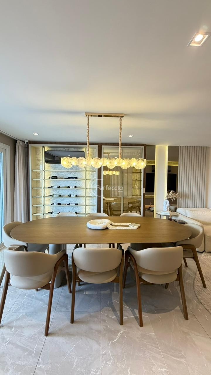 São 157m² de área privativa e 221m² de área total, com 3 suítes — incluindo uma master com closet, living amplo e integrado à cozinha, sala de estar e sala de jantar, área de serviço separada e sacada gourmet.