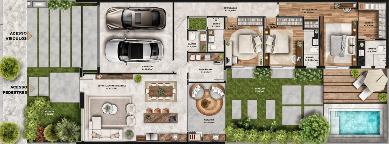 ✔3 suítes sendo uma master